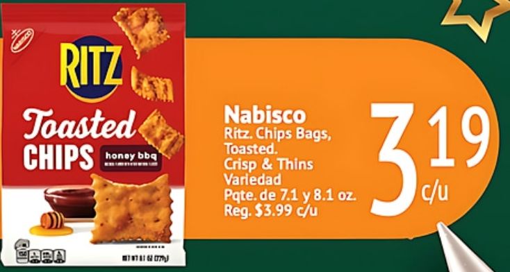 ritz toasted chips honey nabisco bags toasted. crisp thins variedad pqte. reg. $c/u