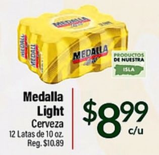 medall medalla productos isla light cerveza latas reg. $$⁹⁹