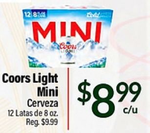 /ini coou light coors mini cerveza latas reg. $$⁹⁹