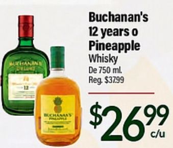 buchanaas buchanan's years pineapple whisky reg.
