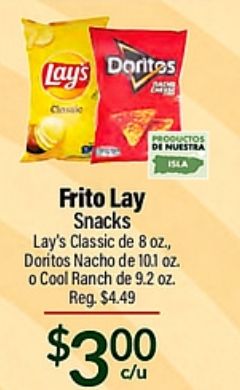 lays dorites clossie productos isla frito snacks lay's classic doritos nacho cool ranch reg. $$c/u