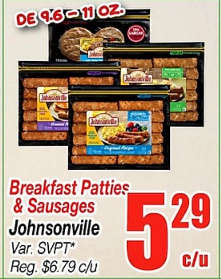 larger johnsonville breakfast patties sausages svpt* reg. $c/u