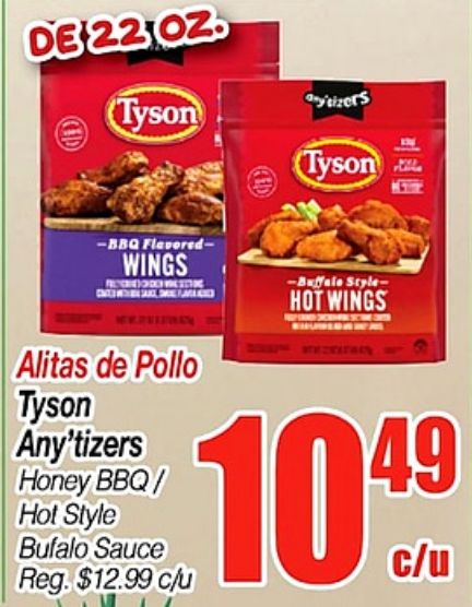 tyson arytizers -bbq flavored- wings alitas pollo any'tizers honey bbq/ style bufalo sauce reg. $c/u -bufale style-
