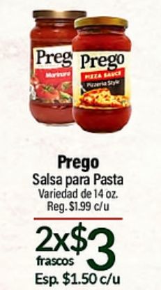 preg prego pizza sauce pezzeria styl salsa pasta variedad reg. $c/u x$frascos esp.