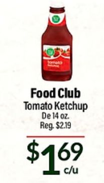omuns food club tomato ketchup reg. $$c/u