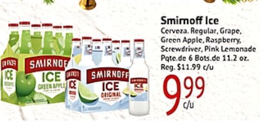 green applic smirnoff original smirnof cerveza regular grape, apple, raspberry, screwdriver, pink lemonade pate.de bots.de reg. $c/u