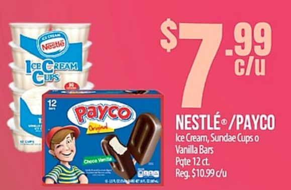 cecream nestle cream cups payco original choce $c/u nestlé®/payco sundae vanilla bars pqte dras reg.