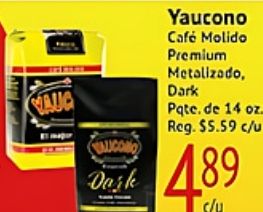 naug aucom dark yaucono café molido premium metalizado pate reg. $c/u