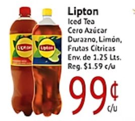 lipton iced cero azúcar durazno limón, frutas citricas lts. reg. $