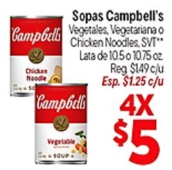 sopas campbell's campbell vegetales vegetariana chickes noodle chicken noodles, svt" lata $c/u vegetable