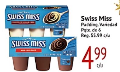 swiss miss pudding variedad pate.de reg. $c/u