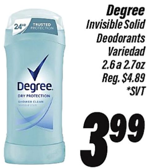 trusted frotection degree protection shower clean invisible solid deodorants variedad reg. $*svt