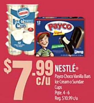cana payco nestlé $c/u choco vanilla bars creamo sundae cups pate