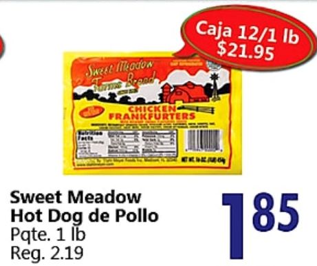 sweet meadow brood chicken frankfurters caja $facts pollo pqte reg.