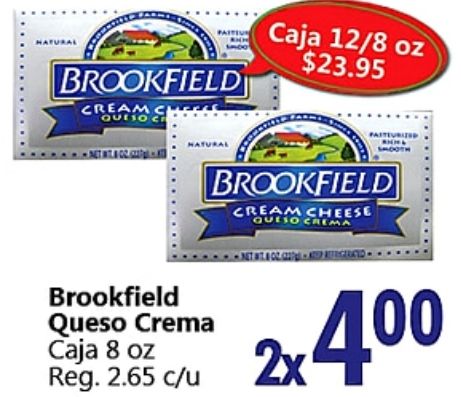natural paitiu brookfield cream queso caja $pasteurized smooth cheese crema
