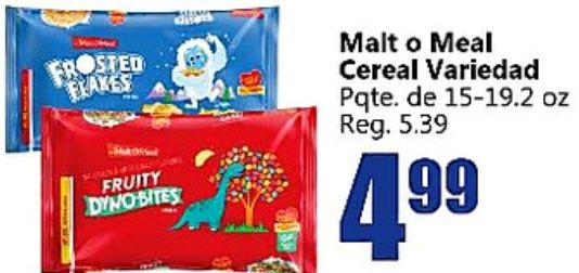 frosted flakes fruity dyno bites malt meal cereal variedad pqte reg.