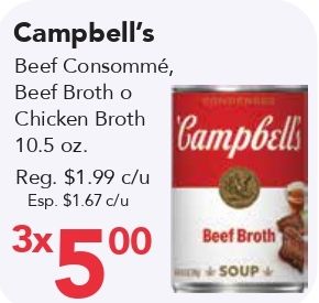 campbell's beef consommé broth chicken reg. $c/u esp. xenger campbells soup+