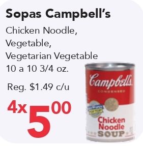 sopas campbell's chicken noodle vegetable, vegetarian vegetable campbells reg. $c/u commersed *chicken soup