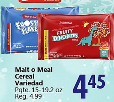 frost flake maturally artifically flavored malt meal fruity dyno-bites cereal variedad pqte reg.