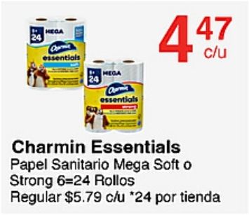 hega essentials mega carma charmin papel sanitario soft strong rollos regular $c/u *por tienda