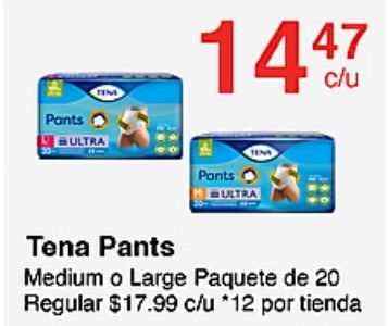 pants ultra tena medium large paquete regular $c/u *por tienda
