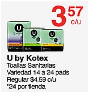 kotex toallas sanitarias variedad pads regular $c/u *por tienda