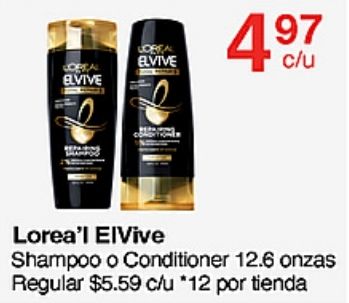 loreal elvive lorea'l shampoo conditioner onzas regular $c/u *por tienda