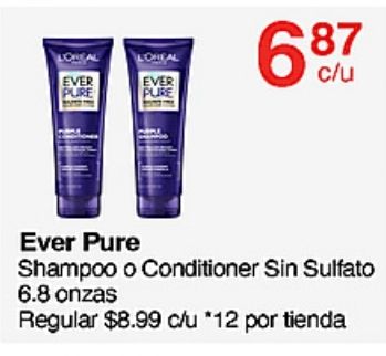loreal ever pure shampoo conditioner sulfato onzas regular $c/u *por tienda
