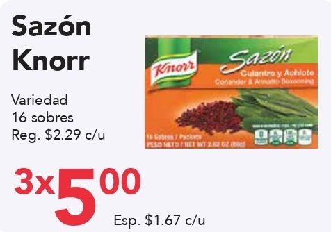 sazón knorr variedad sobres sazon culantro achiote conander auto sexsoning $c/u xsabres/packets peso meto esp.