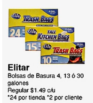 trash bags elitar tall kitchen bays bolsas basura alones regular $c/u *por tienda cliente