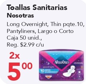 toallas sanitarias long overnight thin pqte pantyliners, corto caja unid., reg. $c/u oodrichs
