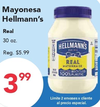 mayonesa hellmann's real reg. $tomma mayonnaise recycled plastic lĂmite envases cliente precio especial.