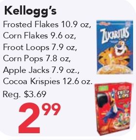 kellogg's frosted flakes corn froot loops pops apple jacks cocoa krispies reg. $zucaritas