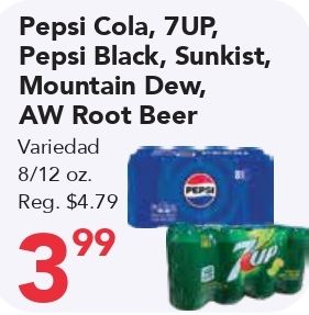 pepsi cola black, sunkist, mountain dew, root beer variedad reg.