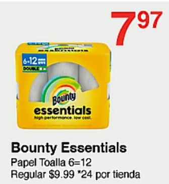 doubl bounty essentials high performance cost papel toalla =regular $*por tienda
