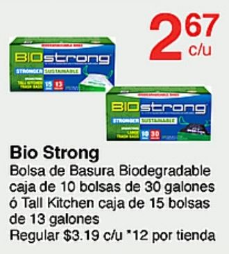 biostrong stronger sustable strong bolsa basura biodegradable caja bolsas alones tall kitchen regular $c/u *por tienda