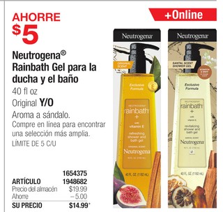 NeutrogenaⓇ Rainbath Gel para la ducha y el baño 40 fl oz Original Y/O Aroma a sándalo. Compre en linea para encontrar una selección más amplia