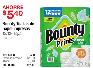 Bounty Toallas de papel impresas 12/124 hojas LÃMITE DE 5