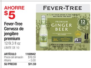 Fever-Tree Cerveza de jengibre premium 12/9.3 fl oz LÃMITE DE 10