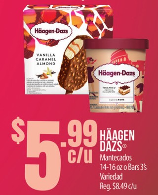 HAAGEN DAZS Mantecados 14-16 oz o Bars 3's Variedad