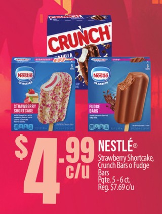NESTLE Strawberry Shortcake, Crunch Bars o Fudge Bars Pqte. 5-6 ct.