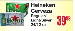 Heineken cerveza regular/light/ silver 24/12 oz.