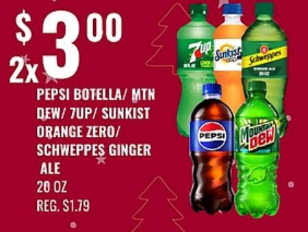 pepsi botella/ dew/up/sunkist orange zero/ schweppes ginger sunkist reg.