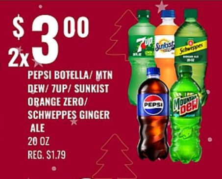 pepsi botella/ dew/up/sunkist orange zero/ schweppes ginger sunkist mount reg.