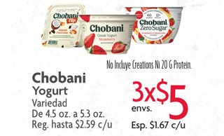 CHOBANI YOGURT DE 4.5OZ A 5.3OZ