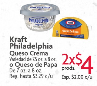 KRAFT, PHILADELPHIA QUESO CREMA VARIEDAD DE 7.5OZ A 8 OZ O QUESO DE PAPA DE 7OZ A 8OZ