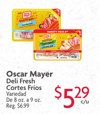 OSCAR MAYER DELI FRESH CORTE FRÃOS VARIEDAD DE 8 OZ A 9OZ