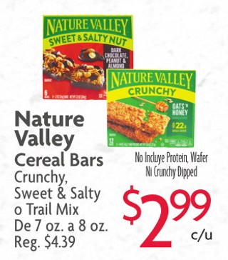 NATURE VALLEY CEREAL BARS CRUNCHY SWEET & SALTY O TRAIL MIX DE 7 OZ A 8 OZ
