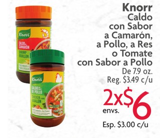 KNORR CALDO CON SABOR A CAMARON, POLLO, RES . TOMATE CON SABOR A POLLO DE 7.9 OZ