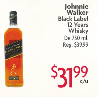 Johnnie Walker Black Label 12 Years Whiskey De 750 ml.